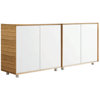 - Finished in zebrano timber veneer with white melamine doors and panels